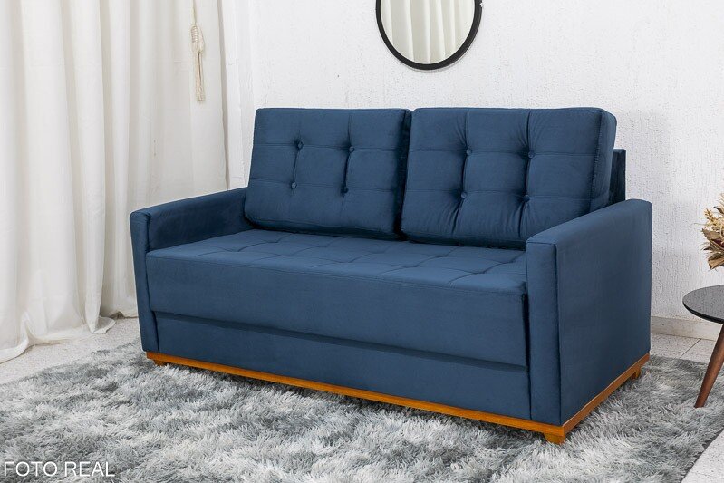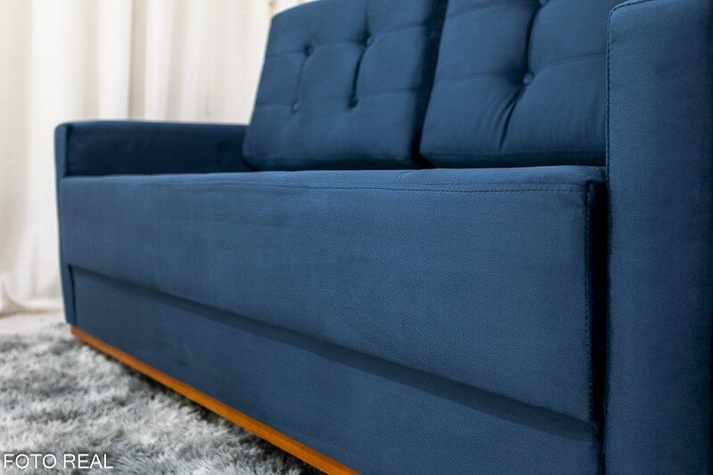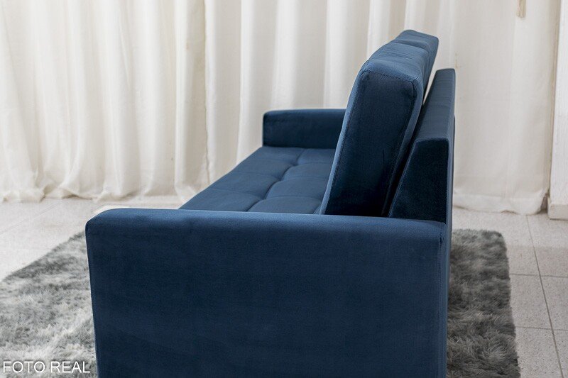 3{%%}Descrição{%%}Sofá 3 lugares Living Áustria Veludo Azul A16 Larg. 1.70m