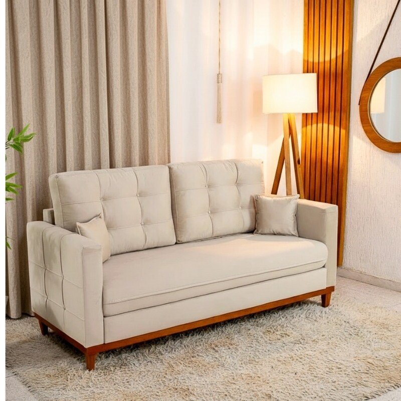 3{%%}Descrição{%%}Sofá 3 lugares Living Califórnia Veludo Bege Larg. 1.82m