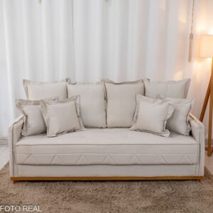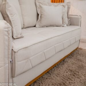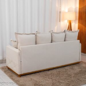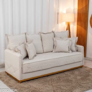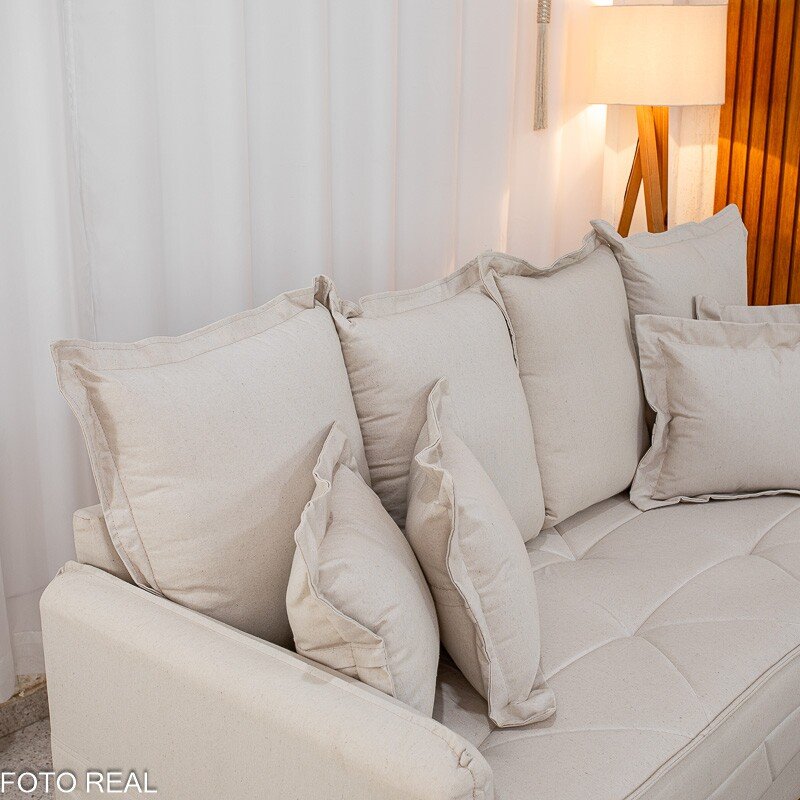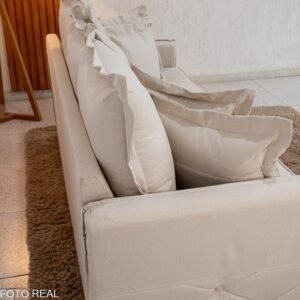 O linho possui uma textura naturalmente sofisticada, que confere ao sofá um aspecto elegante e atemporal.