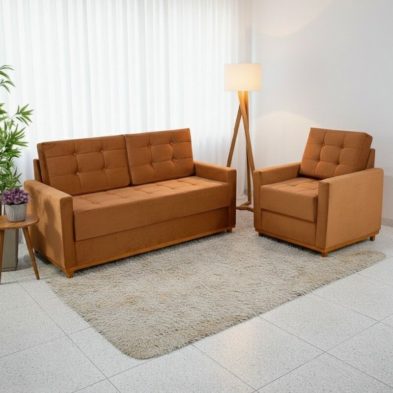 3{%%}Descrição{%%}Sofá Áustria 3 Lugares + Poltrona Áustria Veludo Terracota A62