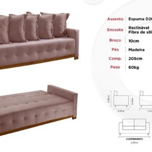 Sofá Cama Feeling 2,05 m Veludo Azul – INNOVE ESTOFADOS