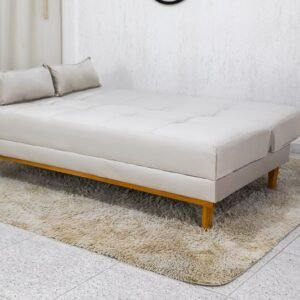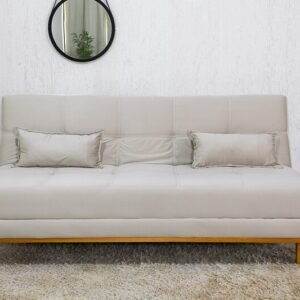 3{%%}Descrição{%%}Sofá Cama Madrid Veludo Bege 2269 Larg. 1.80m – Molas Bonnel