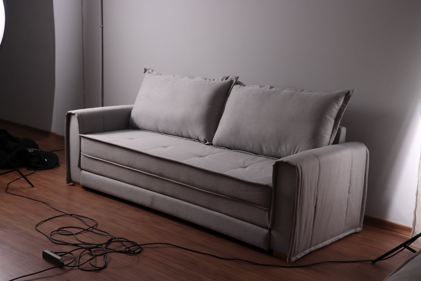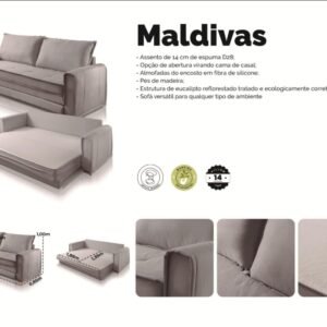 Sofá Cama Maldivas 2,23 m Linho Cinza – JC ESTOFADOS