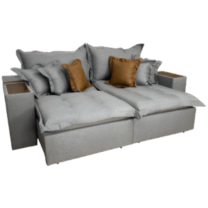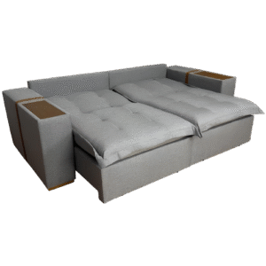 Sofá Cama Thebas/Gabriela 2,30 m Linho Grafite 301/Courino Dalas – ZARAT ESTOFADOS