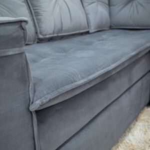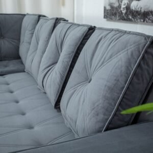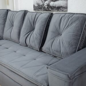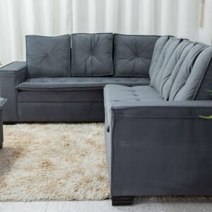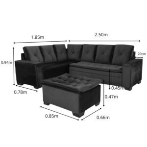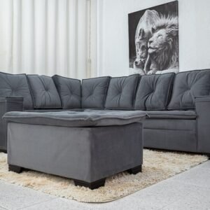 3{%%}Descrição{%%}Sofá Canto 5 lugares com Puff Alemanha Veludo Grafite A15