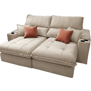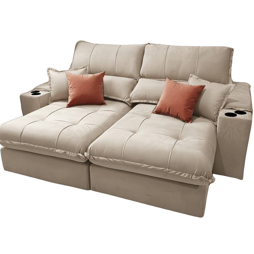 Sofá Retrátil e Reclinável Afrodite Slim 2,90 m Veludo Bege 106 – ZARAT ESTOFADOS