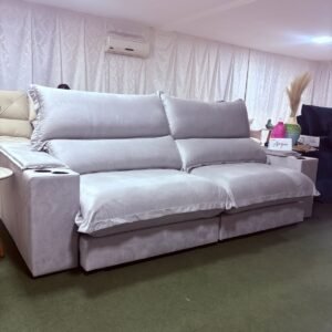 Sofá Retrátil e Reclinável Apogeu 2,90 m Veludo Prata 107 – ZARAT ESTOFADOS