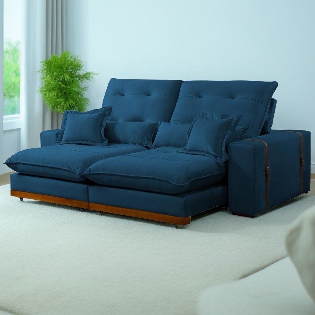 Sofá Retrátil e Reclinável Arthur 2,50 m Azul 4061 – D’VITRINE ESTOFADOS