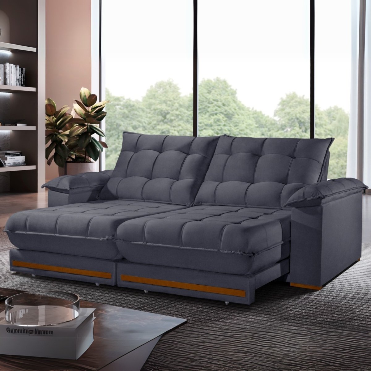 Sofá Retrátil e Reclinável Barcelona 2,50 m Veludo Cinza Grafite – ESTOFADOS TEIXEIRA