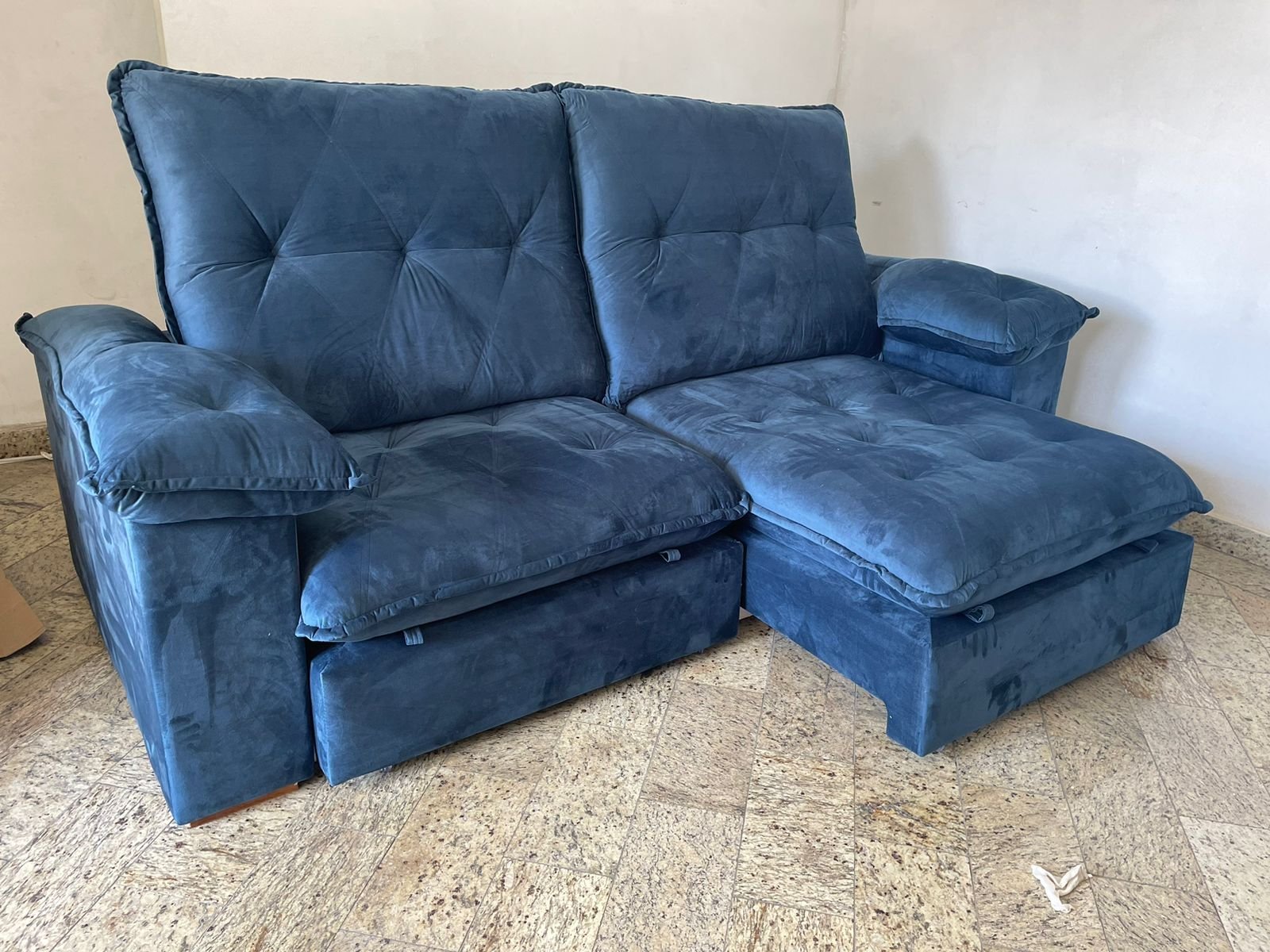 Sofá Retrátil e Reclinável Corvette 2,50 m Azul – D’VITRINE ESTOFADOS(PROMOÇÃO)