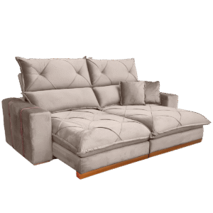 Sofá Retrátil e Reclinável Gran Bello 2,50 m Veludo Bege – QUINE ESTOFADOS