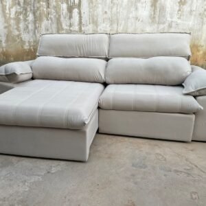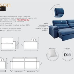 – Encosto reclinável com almofadas fixas 100% fibra siliconada
