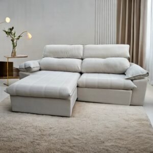 Sofá Retrátil e Reclinável Jackson 2,50 m Veludo Bege 3710 – UNIART ESTOFADOS