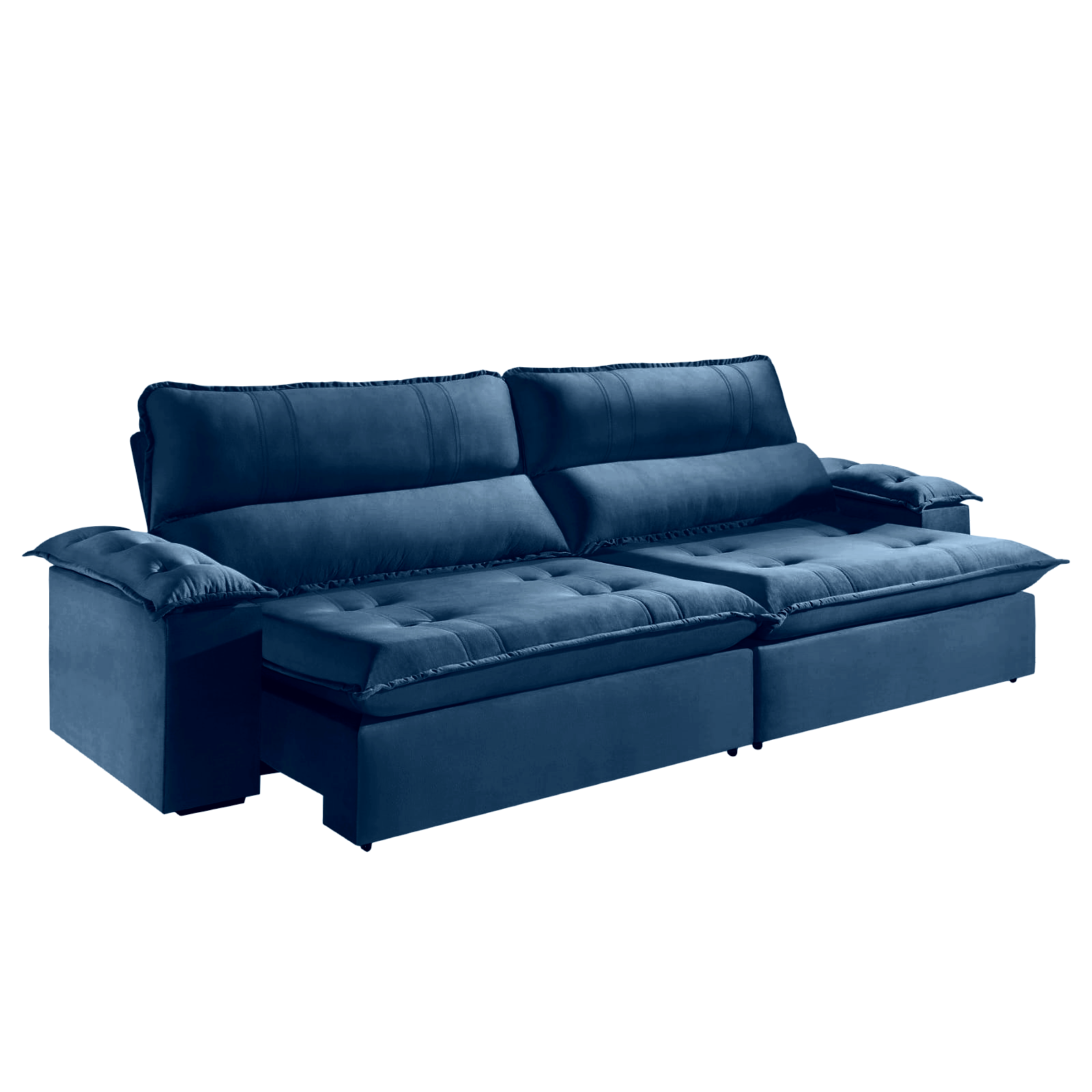 Sofá Retrátil e Reclinável Kiara 2,50 m Veludo Azul 104 – ZARAT ESTOFADOS