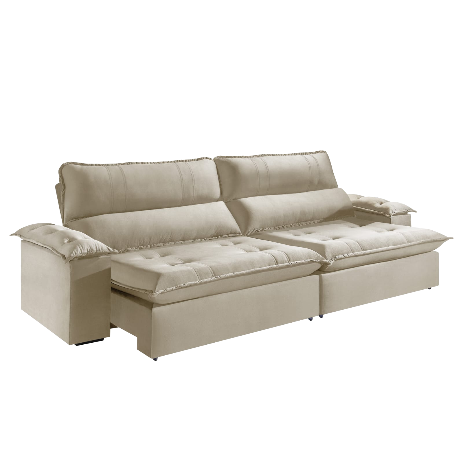Sofá Retrátil e Reclinável Kiara 2,50 m Veludo Bege 106 – ZARAT ESTOFADOS