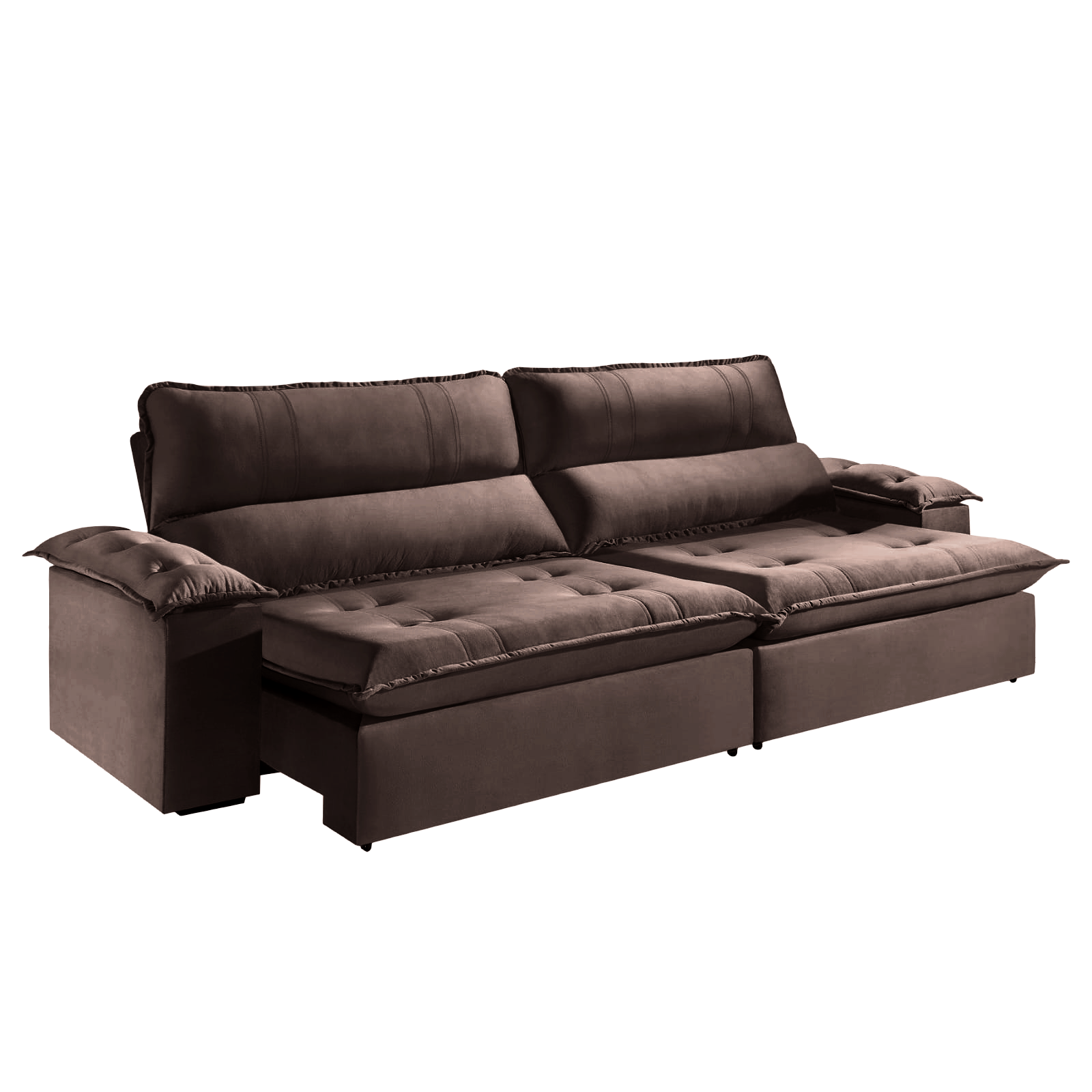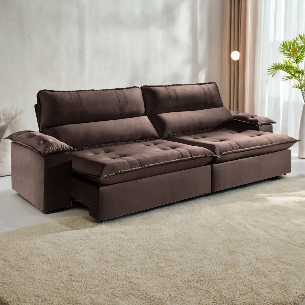 Sofá Retrátil e Reclinável Kiara 2,50 m Veludo Marrom 105 – ZARAT ESTOFADOS