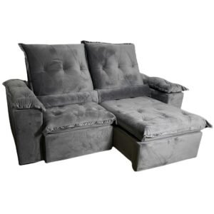 Sofá Retrátil e Reclinável Londrina 2,30 Veludo Cinza Grafite – IMPÉRIO ESTOFADOS