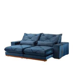 Sofá Retrátil e Reclinável Luanda 2,50 m Veludo Azul – TREVO ESTOFADOS