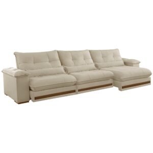 Sofá Retrátil e Reclinável Qatar 3,50 m Veludo Marfim B015 – TREVO ESTOFADOS