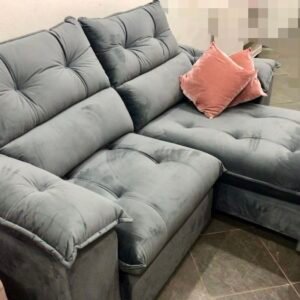 Sofá Retrátil e Reclinável Suíça 2,10 m Veludo Cinza Grafite – LEO DECOR