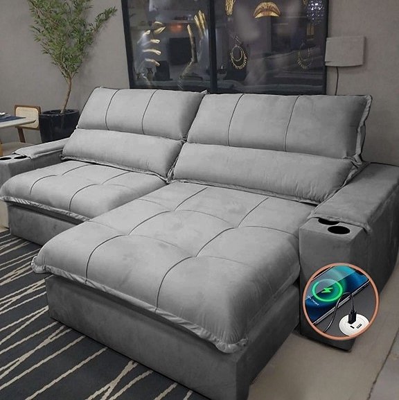 Sofá Retrátil e Reclinável Zeus 2,50 m Cinza – ZARAT ESTOFADOS