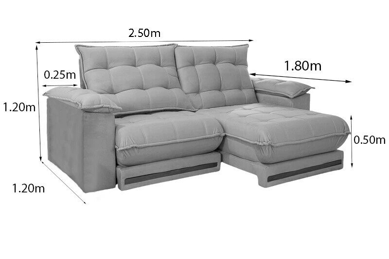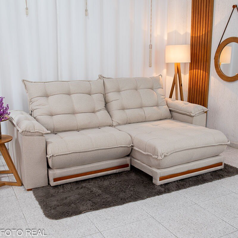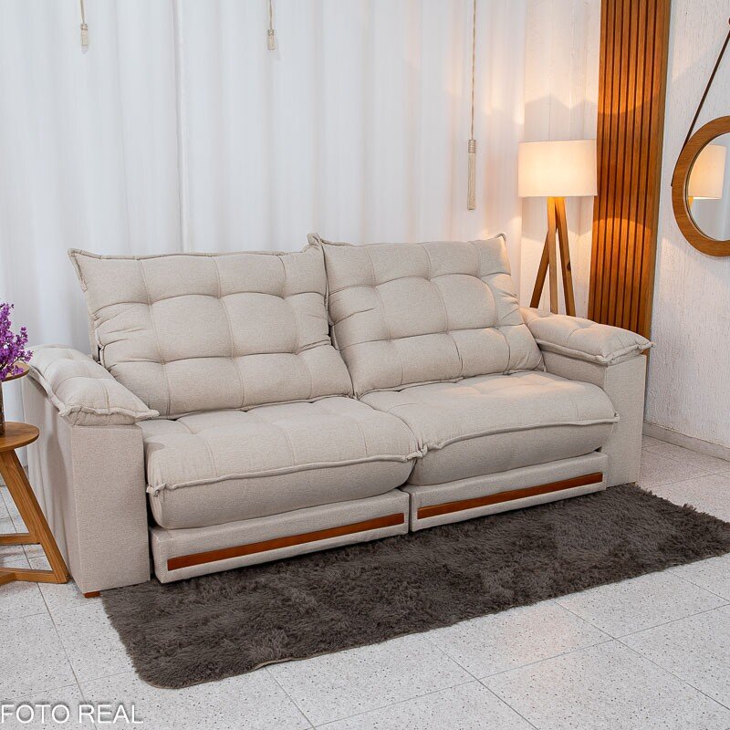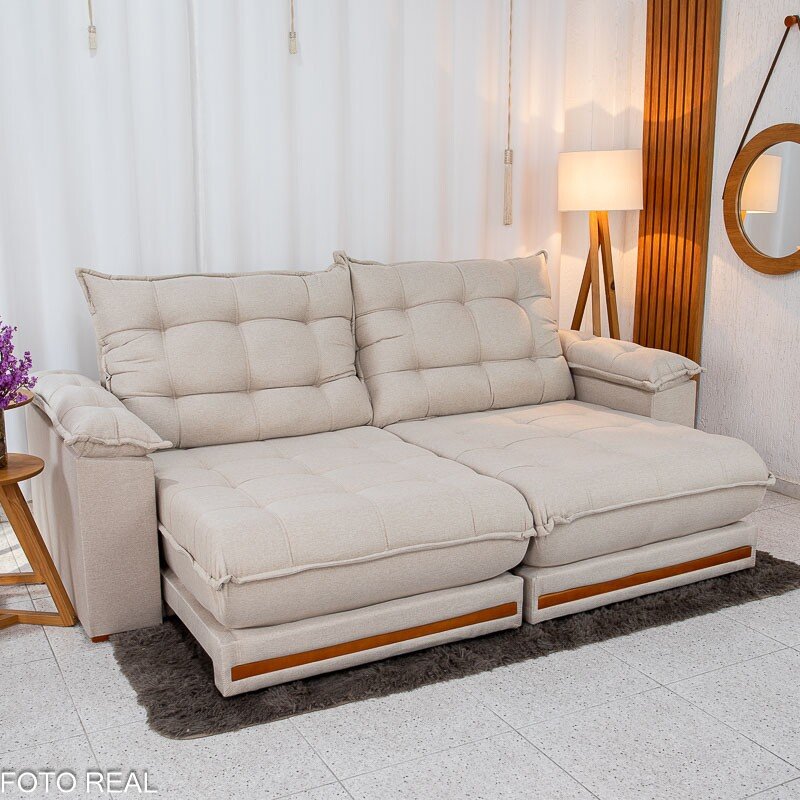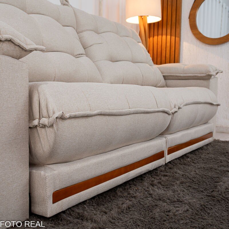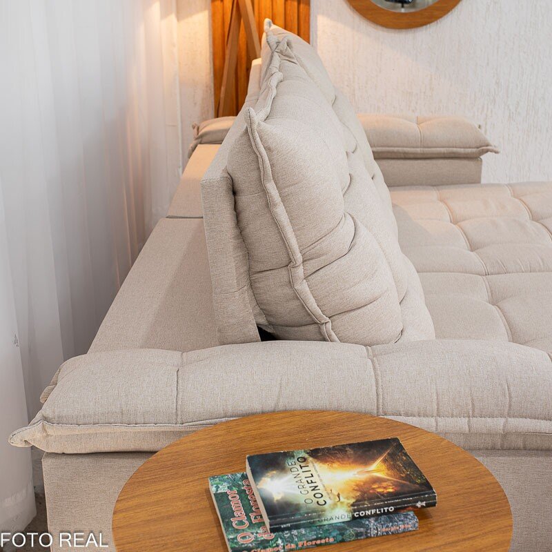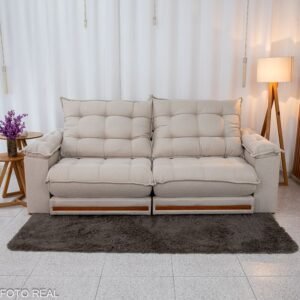 Sofá Retrátil Reclinável Barcelona 2.50m Linho Bege 459 – D33 e Molas Ensacadas