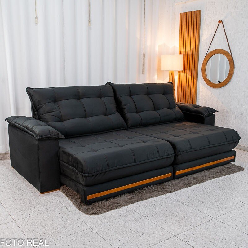 3{%%}Descrição#Benefícios das molas ensacadas{%%}Sofá Retrátil Reclinável Barcelona 2.90m Veludo Preto 322 – D33 e Molas Ensacadas