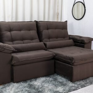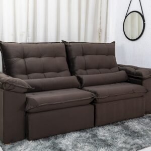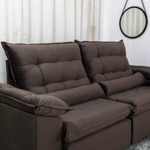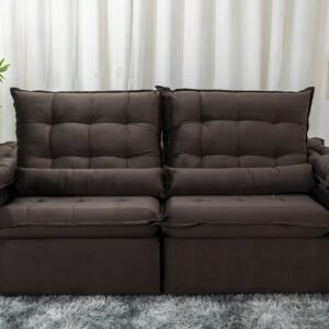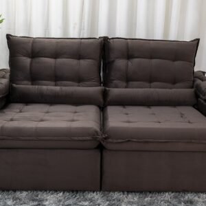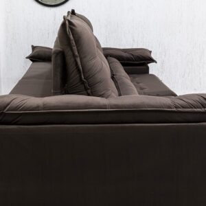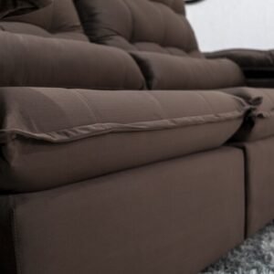 3{%%}Descrição{%%}Sofá Retrátil Reclinável Emanuelly 2.30m Veludo Marrom – D28 Soft