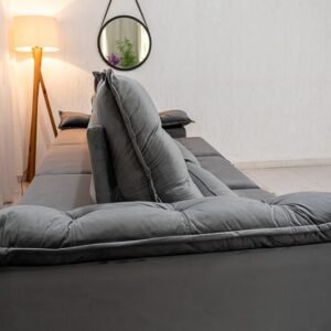 Informamos que é normal haver uma abertura entre os módulos dos sofás retráteis. Essa abertura é necessária para evitar atrito entre os módulos durante o movimento de abrir e fechar, prevenindo o desgaste do tecido.
