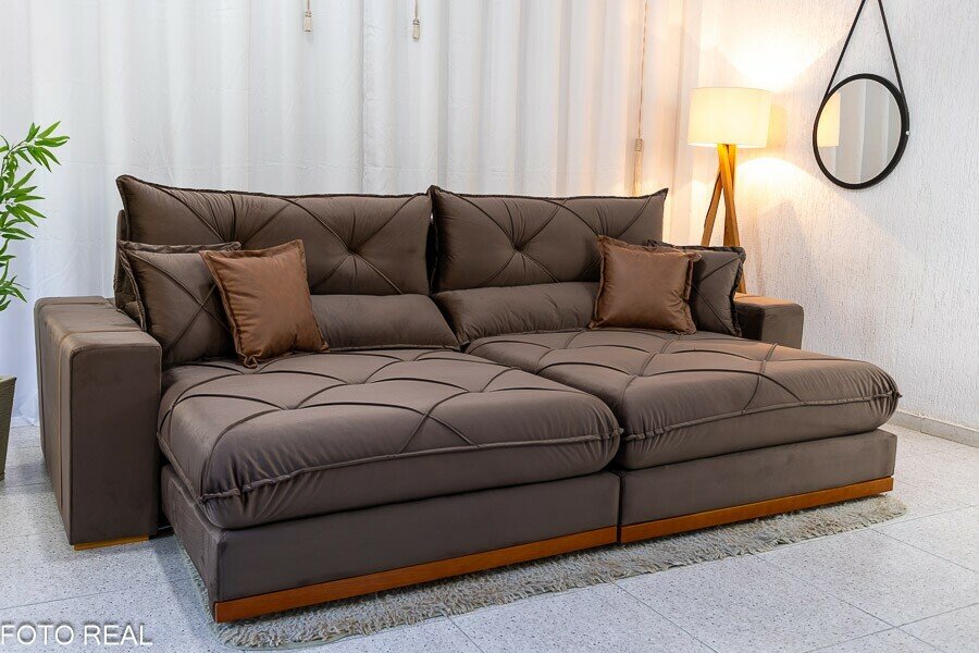 3{%%}Descrição#Benefícios das molas ensacadas{%%}Sofá Retrátil Reclinável Gran Bello 2.90m Veludo Marrom – Molas Ensacadas