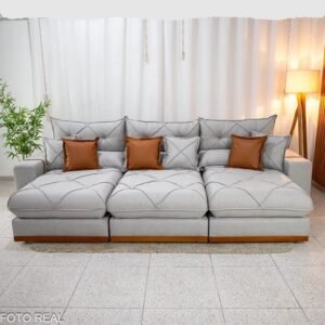 3{%%}Descrição#Benefícios das molas ensacadas{%%}Sofá Retrátil Reclinável Gran Bello 3.20m Linho Cinza – Molas Ensacadas