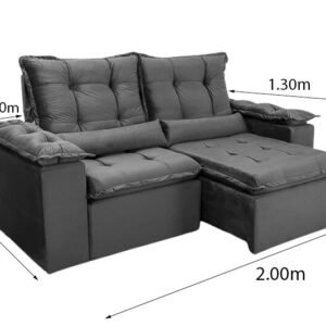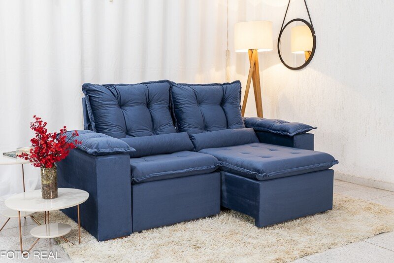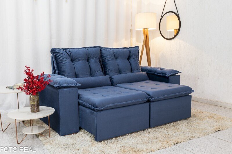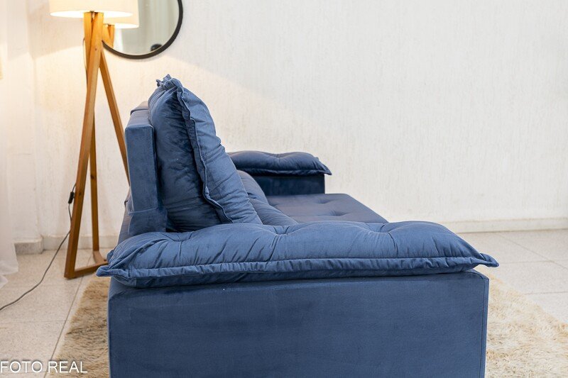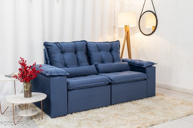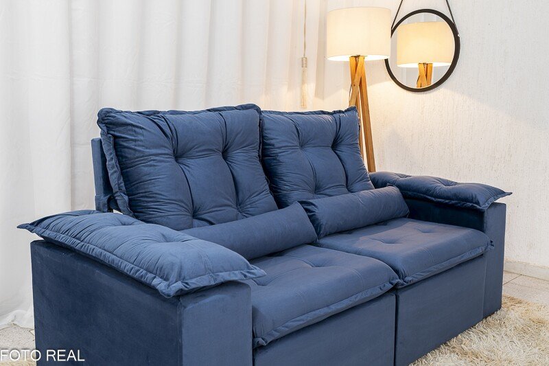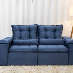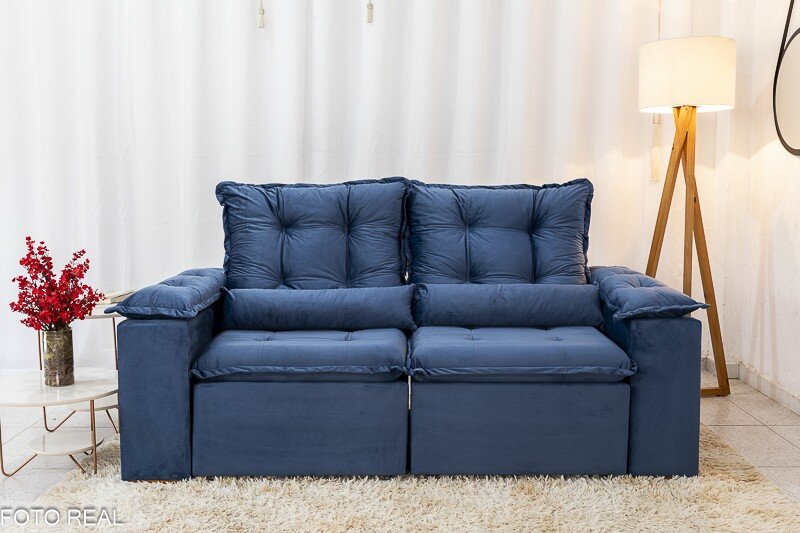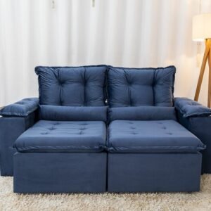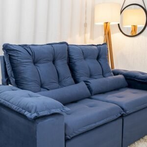 3{%%}Descrição{%%}Sofá Retrátil Reclinável Grécia 2.00m Veludo Azul – Sem caixa