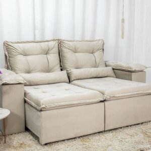 3{%%}Descrição{%%}Sofá Retrátil Reclinável Grécia 2.00m Veludo Bege – Sem caixa