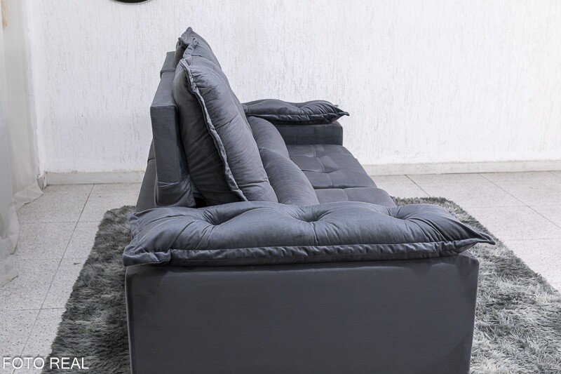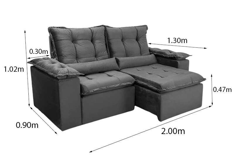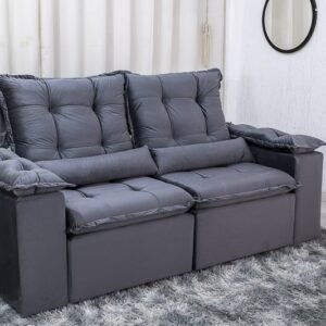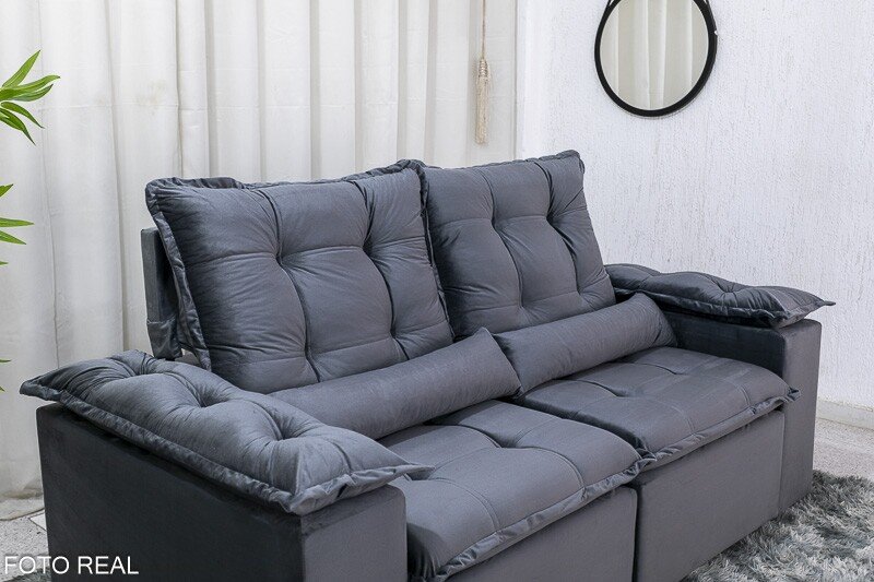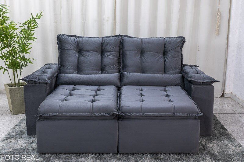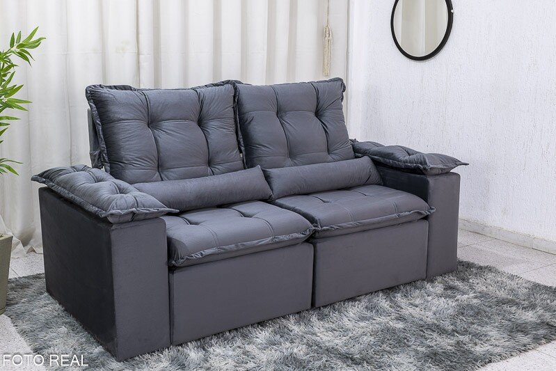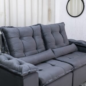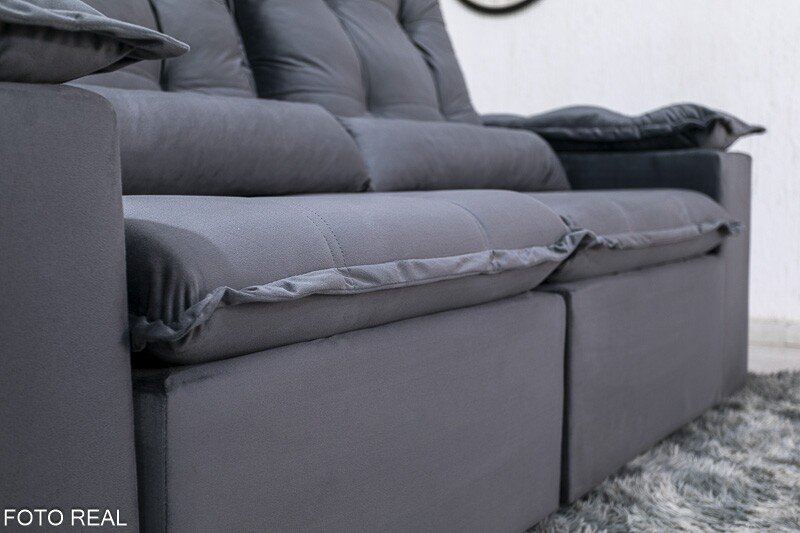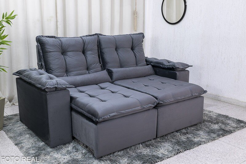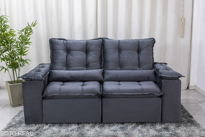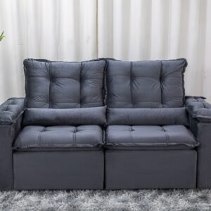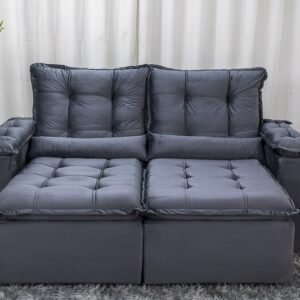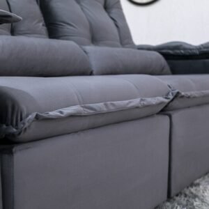 3{%%}Descrição{%%}Sofá Retrátil Reclinável Grécia 2.00m Veludo Cinza – Sem Caixa
