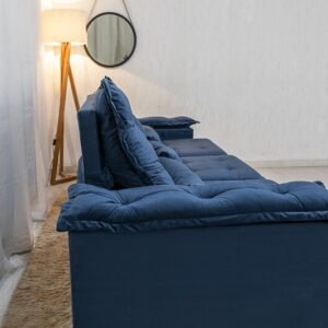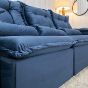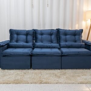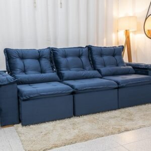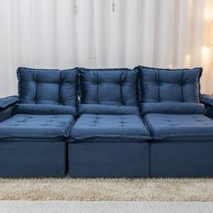 3{%%}Descrição{%%}Sofá Retrátil Reclinável Grécia 2.70m Veludo Azul – Sem Caixa