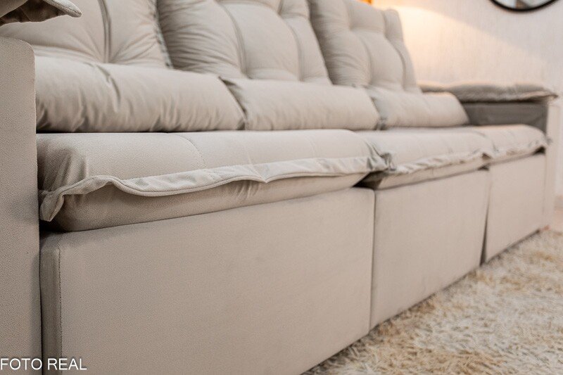 Atenção: Informamos que é normal haver uma abertura entre os módulos dos sofás retráteis. Essa abertura é necessária para evitar atrito entre os módulos durante o movimento de abrir e fechar, prevenindo o desgaste do tecido.