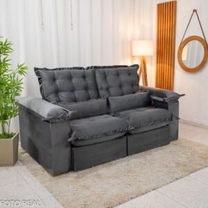 3{%%}Descrição{%%}Sofá Retrátil Reclinável Maldivas 2.10m Veludo Grafite A15 – D28 Pró Aditivada