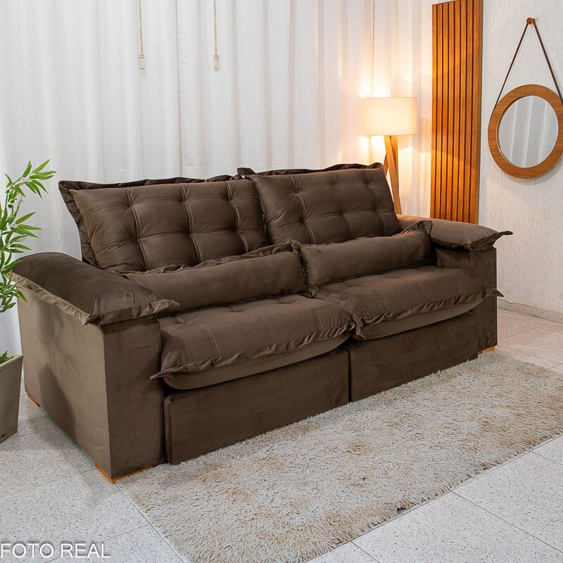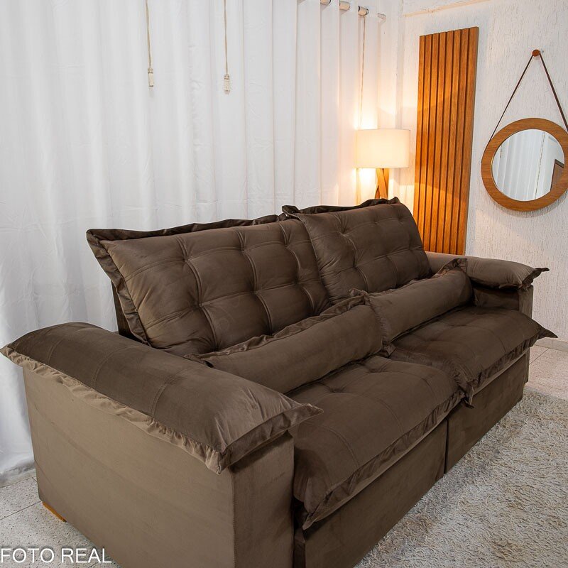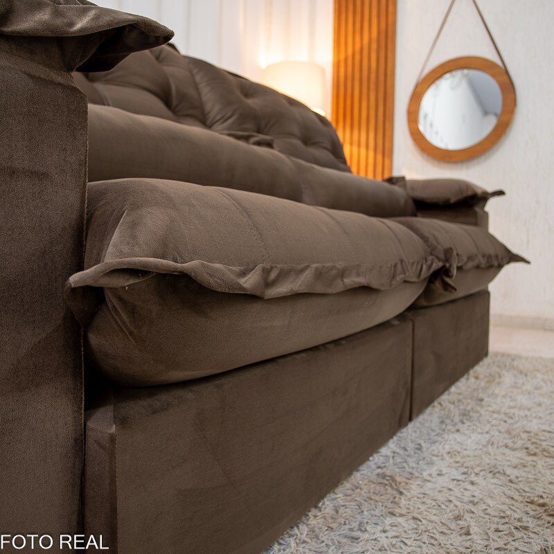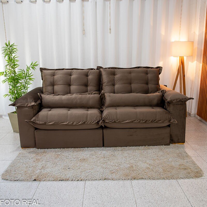 3{%%}Descrição{%%}Sofá Retrátil Reclinável Maldivas 2.50m Veludo Marrom A17 – D28 Pró Aditivada