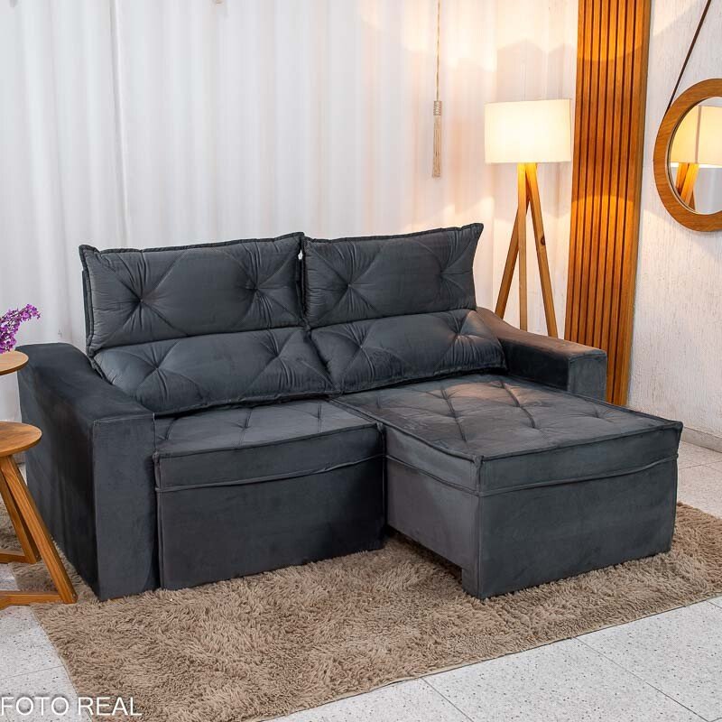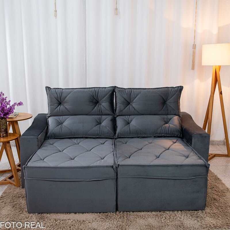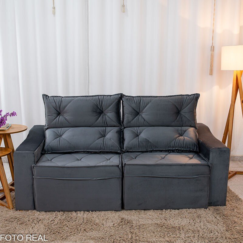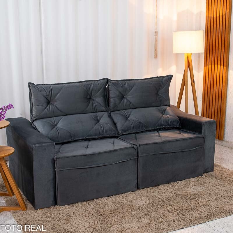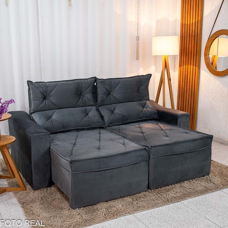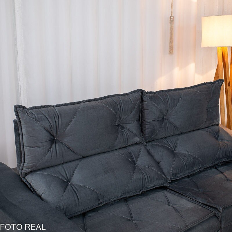 3{%%}Descrição{%%}Sofá Retrátil Reclinável Moscou 2.00m Veludo Grafite A15