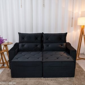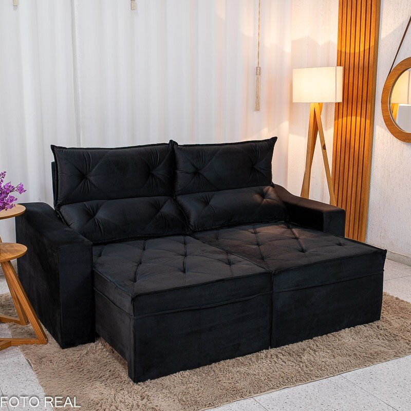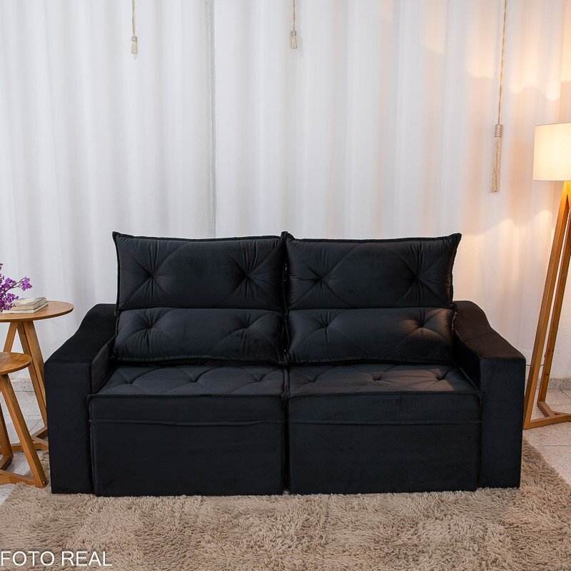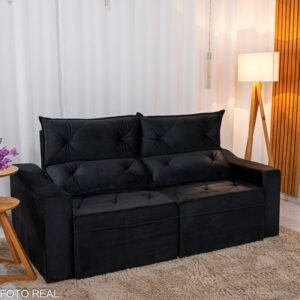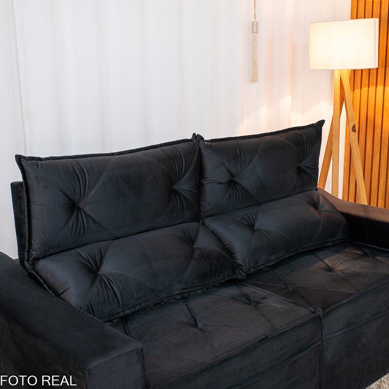 3{%%}Descrição{%%}Sofá Retrátil Reclinável Moscou 2.00m Veludo Preto A14