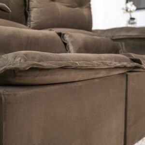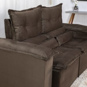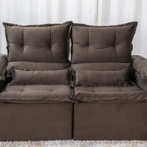 3{%%}Descrição{%%}Sofá Retrátil Reclinável Nicole 1.80m Veludo Marrom A17