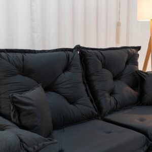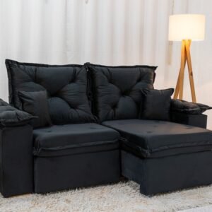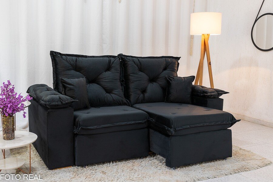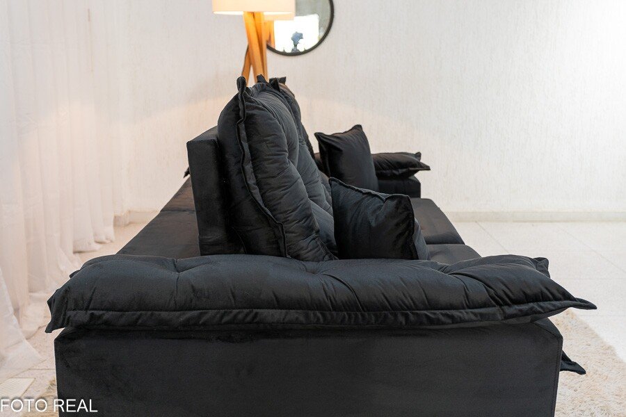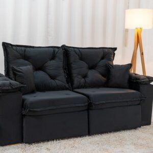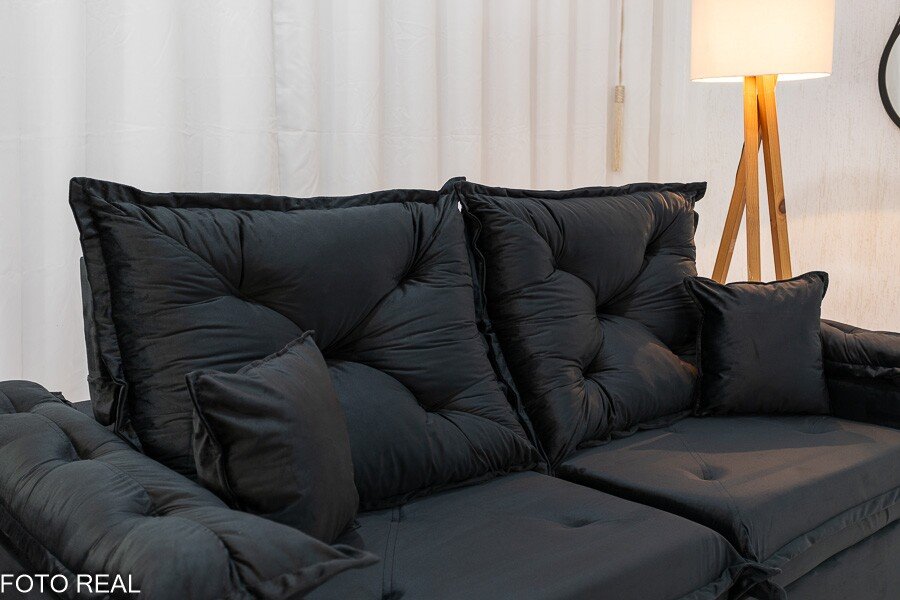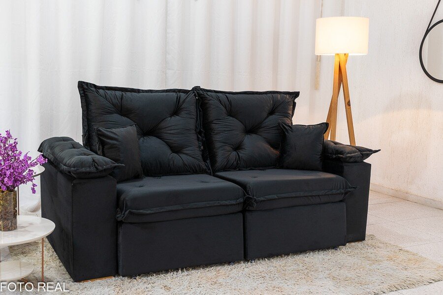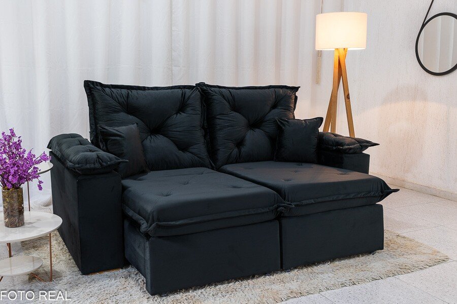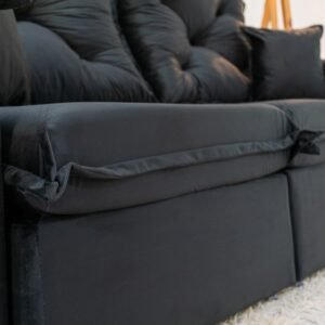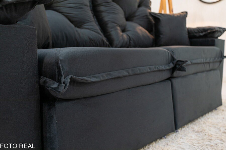 3{%%}Descrição{%%}Sofá Retrátil Reclinável Porto Madri 2.00m Veludo Preto – D28 Pró Aditivada