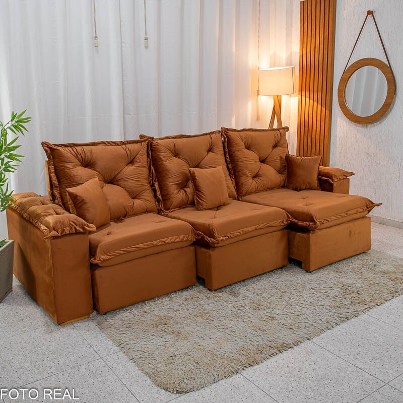 3{%%}Descrição{%%}O Sofá Retrátil Reclinável Porto Madri é a combinação perfeita entre design moderno e funcionalidade. Com 2.70 metros de largura, ele acomoda com conforto e ainda passa em portas de 70cm, facilitando na hora da entrega ou mudanças. Seu revestimento em veludo terracota de toque super macio traz um charme especial ao ambiente e combina com diversos estilos de decoração.