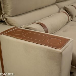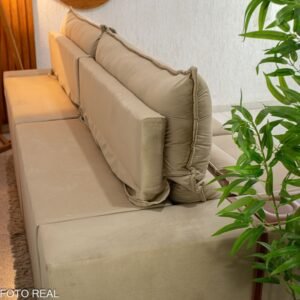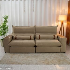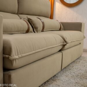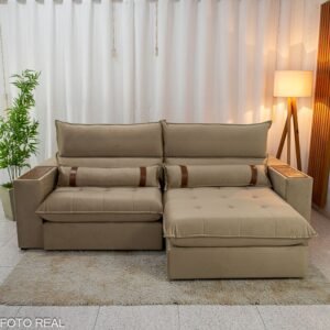 3{%%}Descrição{%%}Sofá Retrátil Reclinável Ravello 2.50m Veludo Bege 3040/04 – Espuma D33