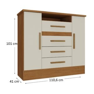 Cômoda 4 Gavetas e 2 Sapateiras Laguna 51CO2430 Cinamomo/Off White – RODIAL MÓVEIS