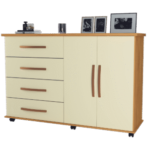 Cômoda 4 Gavetas com Sapateira Dupla Bali Mel/Pérola – MÓVEIS PRIMUS