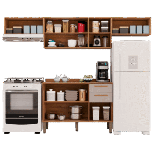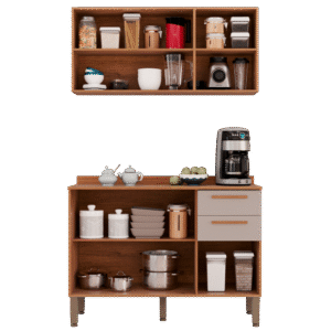 Kit 2 Armário Aéreo Geladeira + 1 Armário Aéreo Triplo + 1 Balcão New Valência Cinamomo/Off White – SALLÊTO