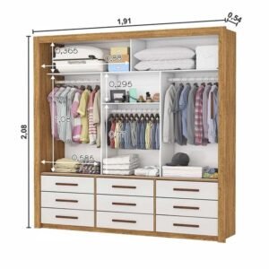 Roupeiro Alvorada 6 Portas larg. 2.70m 100% MDF Nature/Off – Bianchi