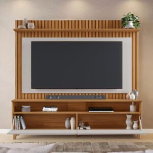 Home Florianópolis Larg.1.75m Off/Amêndoa C/ Detalhe Ripado para TV até 70″ – Mobler