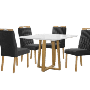 Mesa Pedro 120 Mel/Off White com 4 Cadeiras Gênova Veludo Preto – ART ASSENTOS
